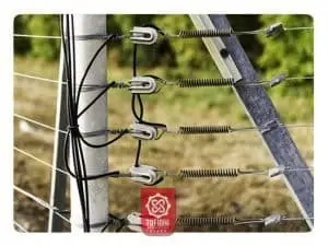 - با استفاده از پایهها و عایقهای فایبرگلاس(عایق الکتریسیته)، این حصارها بیش از 30 سال، استحکام و امنیت را ایجاد میکنند. در ادامه اگر حصار یا زمین نیاز به تغییر کاربری داشته باشد، می توان آنها را حذف کرد و دوباره استفاده کرد. پایههای فایبرگلاس و فنرهای انعطافپذیر اجازه میدهد تا توری برقی بر روی آنها سوار شوند و خطر برق گرفتگی در سطح پایین رخ ندهد.