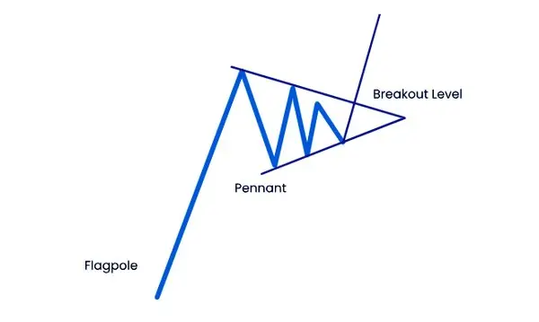 1. پرچم سه‌گوش صعودی (Bullish Pennant):