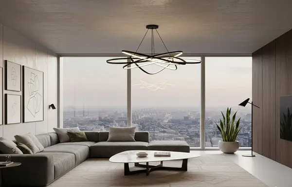 در سوی دیگر میدان، آپارتمان‌های مدرن با سقف‌های بتنی و دیوارهای ساده قرار دارند که نیازمند نوع متفاوتی از روشنایی هستند. لوستر مدرن پاسخی هوشمندانه به نیازهای زندگی معاصر است.