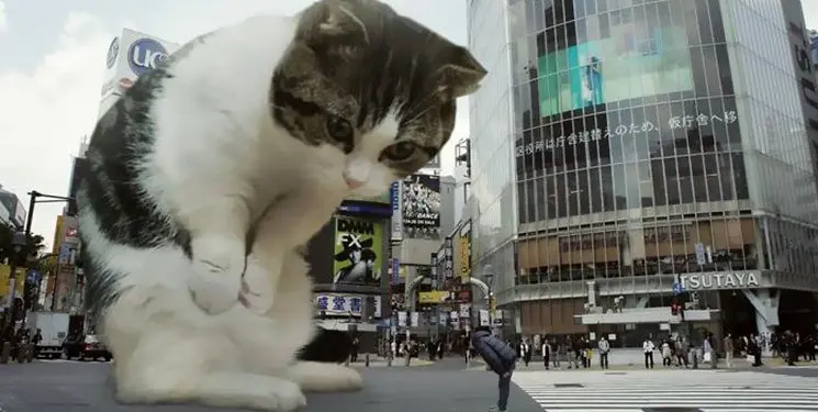تبلیغات ژاپنی با گربه غول پیکر+ فیلم