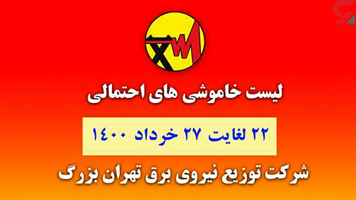 لیست زمان بندی خاموشی های احتمالی برق پایتخت از شنبه 22 لغایت پنجشنبه 27 خرداد ماه 1400 منتشر شد.