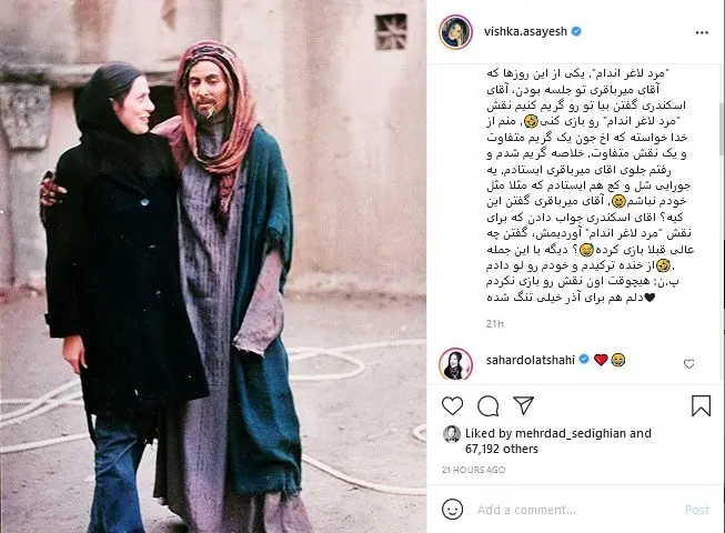 ویشگا آسایش در صفحه اینستاگرام خود عکسی قدیمی را منتشر کرد. او در این عکس با گریمی جالب شبیه یک مرد لاغراندام شده است.