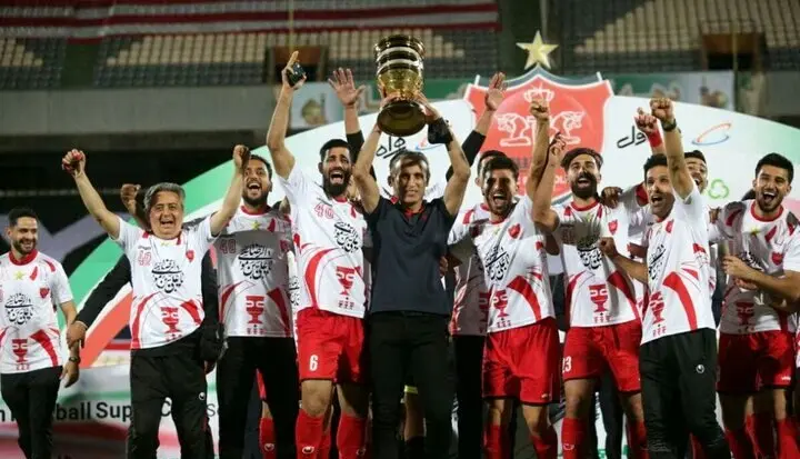 هواداران تیم پرسپولیس پس از قهرمانی در سوپرجام در مقابل اتوبوس تیم جشن گرفتند