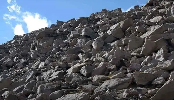 تصویر بالا منظره ای در فضای باز را به تصویر می کشد که در آن صخره ها روی یک قطعه زمین مرتفع پراکنده شده اند.