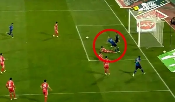 دقایق پایانی دربی در محوطه جریمه پرسپولیس و از دست رفتن تعادل ژستد که استقلالی ها اعتقاد به پنالتی داشتند.